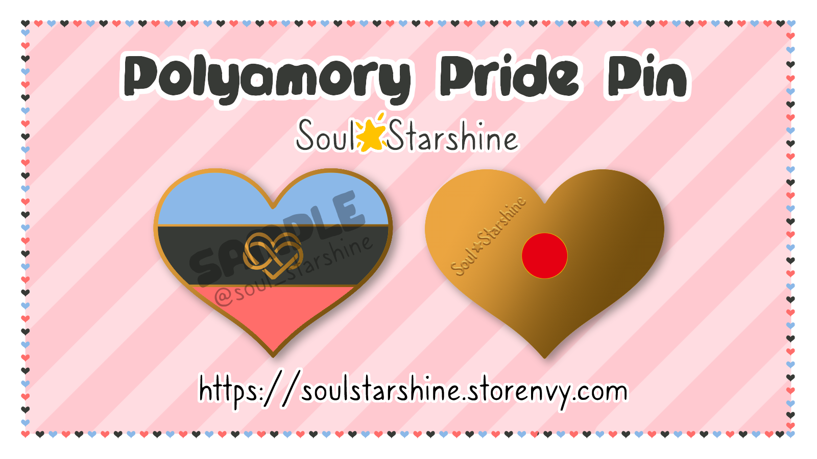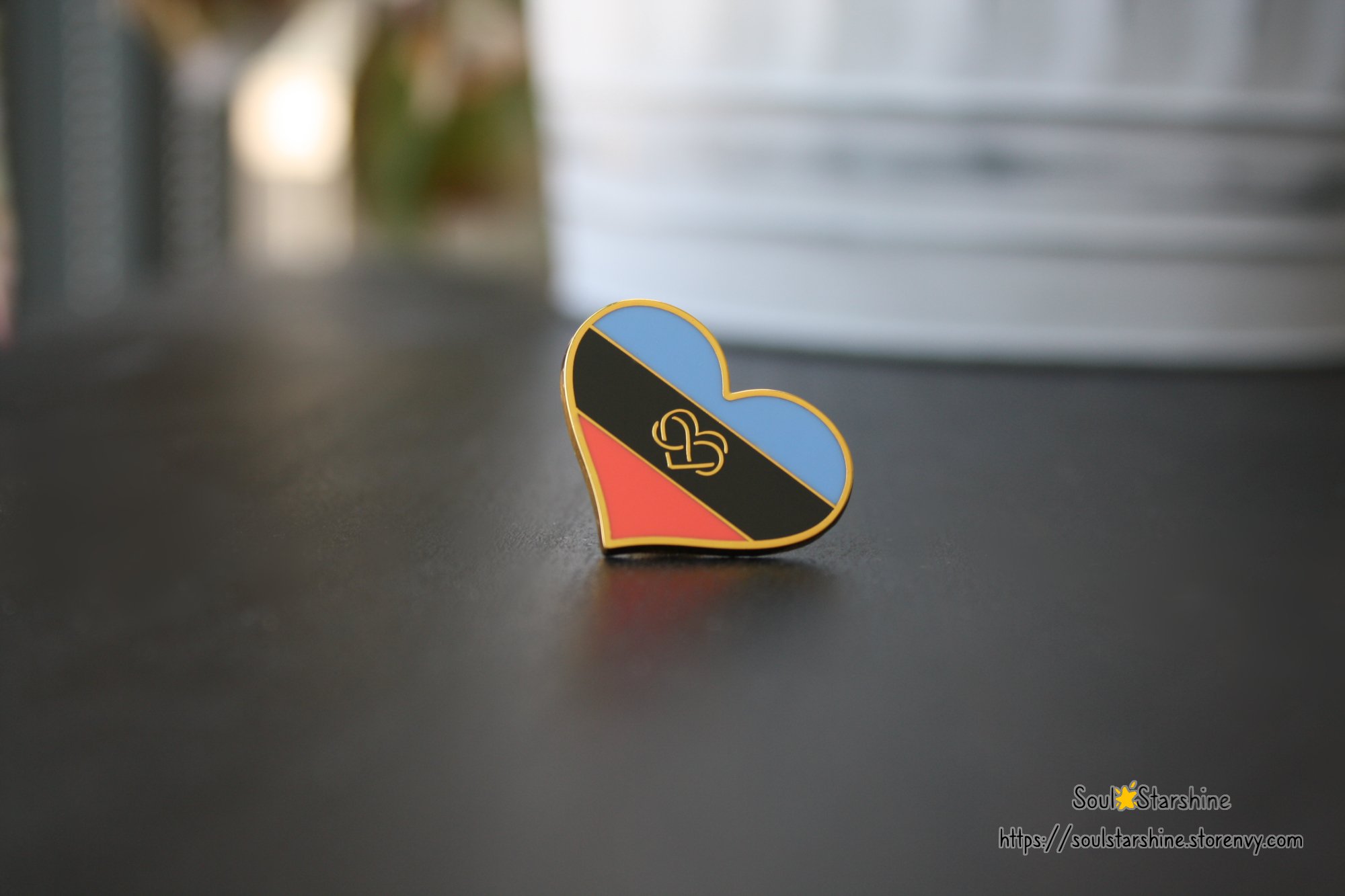Ready to show off your polyamorous pride? This pin features the infinity heart design and a pastel color palette for a more pleasing aesthetic.